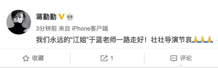 蒋勤勤祝福于蓝老师一路走好的同时,还安慰了田壮壮导演。