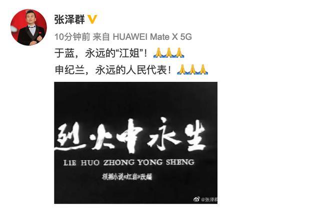 张泽群也是央视主持人,她祝福于蓝的同时,还祝福了申纪兰。申纪兰是2020年6月28日凌晨去世的,享年91岁。申纪兰不是演员,是全国劳动模范。