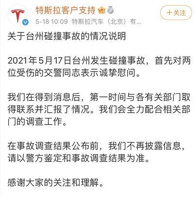 @特斯拉客户支持 18日发布关于台州碰撞事故的情况说明,全文如下: