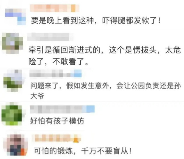 近日,一条大爷大妈“吊脖子”健身的视频走红网络。视频显示,在沈阳某公园健身角的大树上,挂满了吊脖子健身的大爷大妈,大家将头吊起,双脚离地,像荡秋千一样跟随绳索摇晃前后摆动。