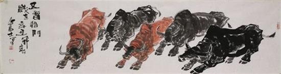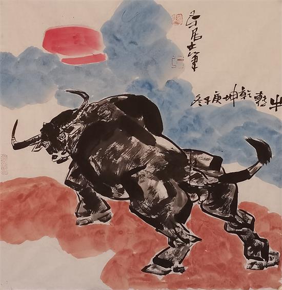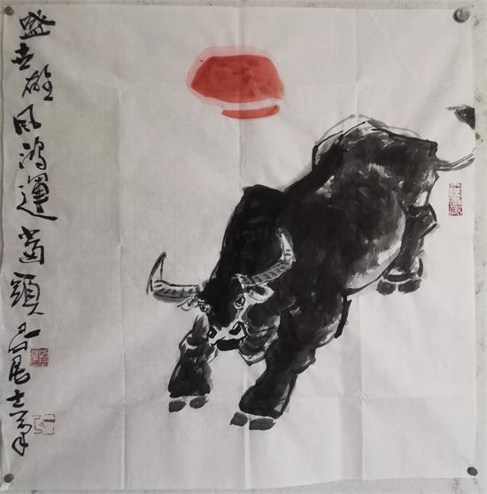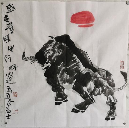 有业内权威人士曾客观评价大墨村长张国强的作品,说他诸如写意马和牛等作品创作都是极具影响力的代表创作,堪称笔墨老辣、独领艺术千秋。他的创作最见长是以笔简意足、构境新颖释怀作品的内涵,有着风韵雅致、画若鸿沟的艺术之美,尤其是写意马和牛的创作,画出了身体彪悍 ,比例匀称、有气势的大手笔,堪称貌在丹青,意在笔成。再赏析他笔下的山水、人物等题材的创作,在笔墨间凸显的就是艺术名家的扛鼎力作。