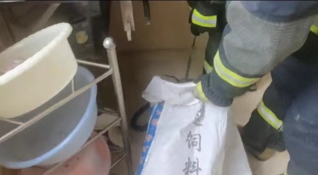 了解情况后,消防指挥员立即下达作战命令,由两名经验丰富的消防员穿好防护装备,准备好编织袋,捕蛇器等工具。随后,对蛇藏匿的杂物堆搜寻,两名消防员小心翼翼的靠近,经过仔细搜寻,只见一条蛇蜷缩在洗漱台底下,两名消防员立即用捕蛇器将蛇控制住并并迅速徒手抓住蛇的七寸装入编织口袋中,最后消防员驱车来到人烟稀少的地区将蛇放归大自然。(石艳升)