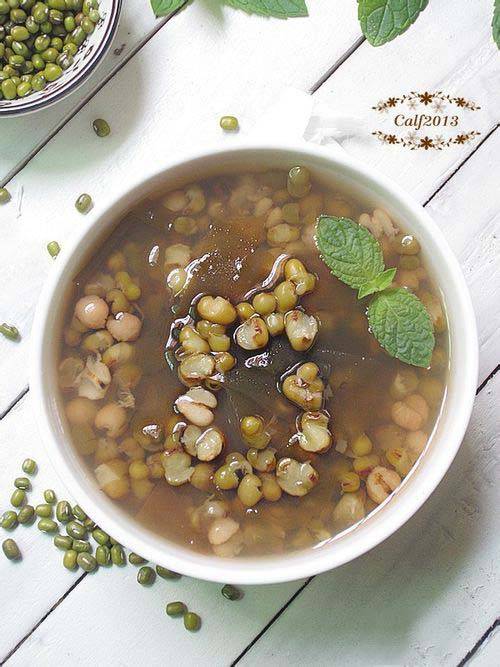 我们推荐绿豆奶,绿豆奶和绿豆水差不多,但是豆奶是用绿豆直接加工而成,比熬制的绿豆水更有营养,味道喝起来更香浓。都奶制品还能够起到降血脂的作用,相对于绿豆水更好一些。