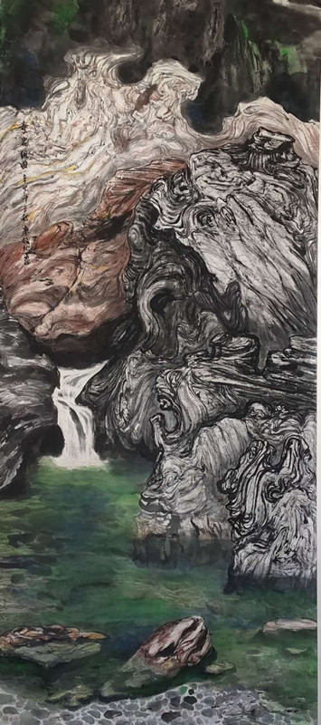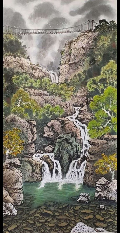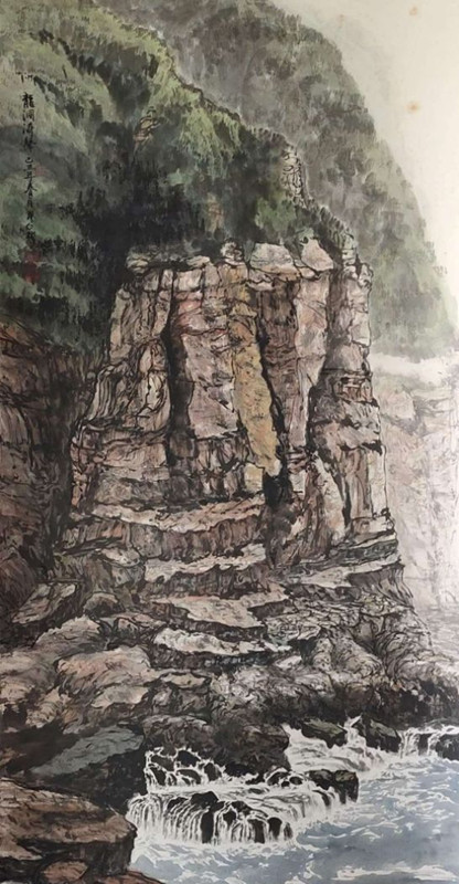 驻足廖仁彬老师作品前,不论观赏那些细致入微描画的花鸟,还是流泉飞瀑、大洋险滩……首先画面会飘来一种明快的时空节奏,那是画面上栩栩如生的鱼虫花草在大自然沃土里生长的节奏;另有一种沉醉与震撼的力量,那是大山、峡谷、海浪、云气的魅力,令人敬畏自然、心旷神怡!