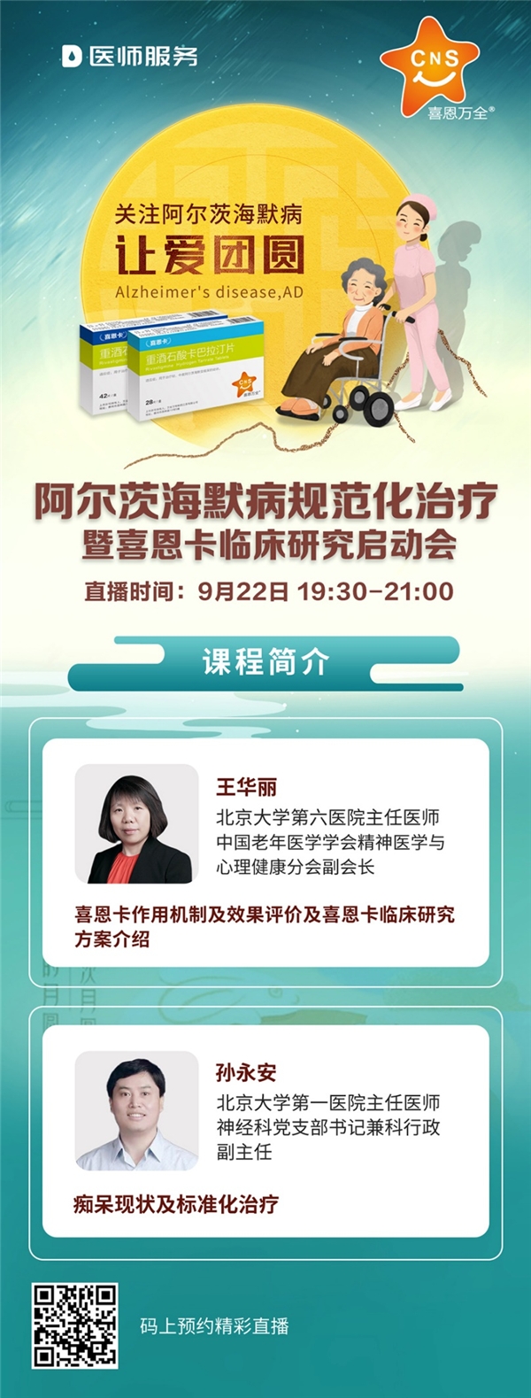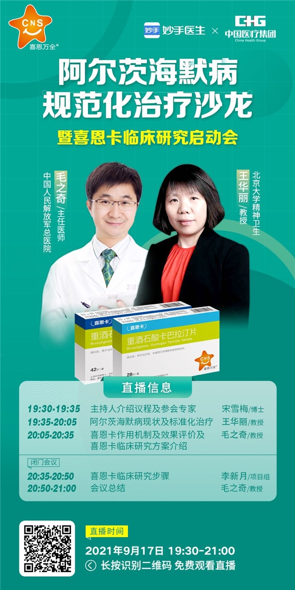 中国医疗集团下属防治痴呆研究院,是一所专注痴呆疾病的专业研究机构,旗下公司致力于阿尔兹海默症药物研发,重磅推出“喜恩卡(重酒石酸卡巴拉汀片)”,为全球独家片剂剂型,采用V-smart超微纳米技术,更有利于服用和吸收,患者依从性高,疗效显著。治痴呆研究院汇集了全球顶尖痴呆疾病研究专家,致力于联合各方,聚焦痴呆临床大数据,减轻痴呆患者家庭负担。秉着“患者主义,回馈社会”为初心,在第28个世界阿尔兹海默病日,推出“月入中秋,情何以圆”主题活动,凡是参加喜恩卡大型临床研究的患者(使用喜恩卡的患者)一律可以享受药费减半(喜恩卡+优芝青联合使用效果更好),患者治疗免专家费用。微信搜索并关注“健尚万全”云药店,参与更多健康回馈活动(包含一系列打折卡)。