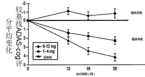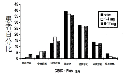 喜恩卡1-4mg/d、6-12mg/d的治疗组均显著优于安慰剂组,6-12mg/d剂量组优于1-4mg/d剂量组