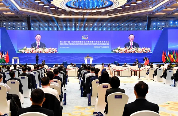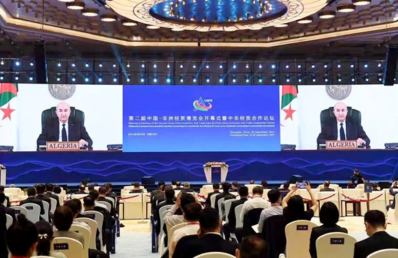 2021年9月26日,第二届中国-非洲经贸博览会暨中非经贸合作论坛在长沙隆重开幕。开幕式上,中共中央政治局委员、中央外事工作委员会办公室主任杨洁篪致辞并宣布开幕。杨洁篪在致辞中说,中国和非洲是命运与共、志同道合的好朋友、好伙伴、好兄弟。习近平主席亲自提出真实亲诚对非政策理念和正确义利观,亲自推动构建更加紧密的中非命运共同体,中非政治互信日益牢固,贸易投资、基础设施、新兴产业等领域务实合作硕果累累。