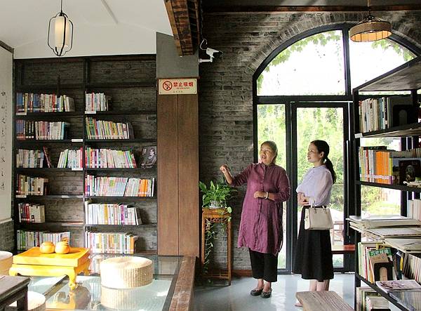 在涪州书院院长张乔英的带领下参观了书院的阅览室、多功能培训室、书画室、琴室、茶室和近年来开展的活动展板等。