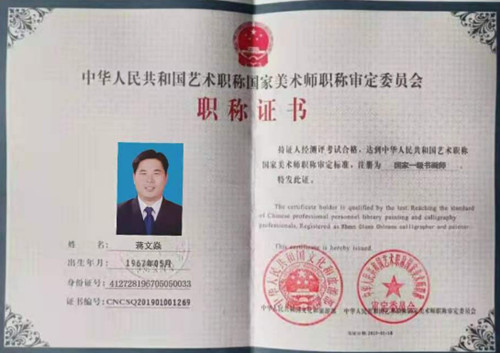 蒋文焱,原名蒋文化,号惊天居士,皈依法号释能文。自幼喜爱书法初学颜、柳贴,后习二王、孙过庭、米芾、赵孟頫、张旭、王铎等书法名家。现任中国青年书画家艺术研究院常务副院长,中国华佗书画院副院长!环球华人爱心书画家协会常务副理事长!河南广播电视台《中原视角》栏目组主任记者!中国实力派书画家!国家一级书画师!荣获中国校园优秀书画名家!环球华人爱心公益艺术家!十佳公益书画家!被中央文化部《追梦中国》大型文献一书和河南广播电视《文化中原》做专题报道!作品《沁园春“雪》荣获中欧文化交流匈牙利书画邀请展一等奖!作品《念奴娇追思焦裕禄》在2019年中国品牌春晚获得金奖!
