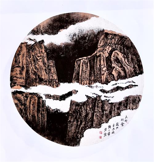 写生采风不仅是对绘画的训练,也是画家与大自然心灵与笔墨的融合,他远离人群城市攀上太行山,尽揽壮阔的太行山钟灵毓秀的景色,更有之于画家对重峦叠嶂、千山万壑险峻之美的赞许。而鬼斧神工的挂壁公路又以“山峡十九转,奇峰当面立,仰望天一线,俯窥千仞壁”的壮观景色让黄强跃然纸上。