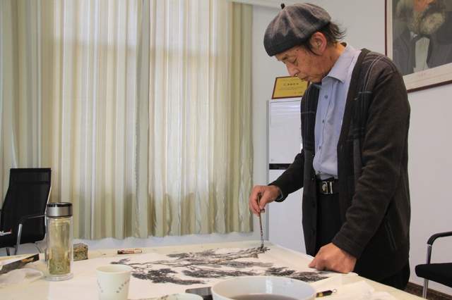 现年73岁的韩兴文老师,凡诗书画印无不精通,尤擅书法丹青,数十年来,已臻化境,造诣颇深,已然大家风范,以一己之力为枣庄地区书画艺术界培养发掘了众多顶尖人才。其作品结体丰满,线条浑厚舒畅,疏密搭配得当,行气疏朗明晰,顾章法气势贯通。擅长中侧锋并用,方圆笔兼施,呈显出生命阳刚之气与笔墨线条的交融互动。笔画粗细有度,疏密有致,柔而不显弱软,刚而不见僵硬;外可赏其挥毫酣畅淋漓的气度,执笔力透纸背,锋开毫平,万毫齐力,圆厚感重;字字笔画清晰挺秀,墨线骨力血丰。