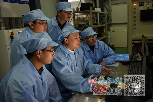 江风益(中)和他的研究团队。江西日报记者罗德斌摄