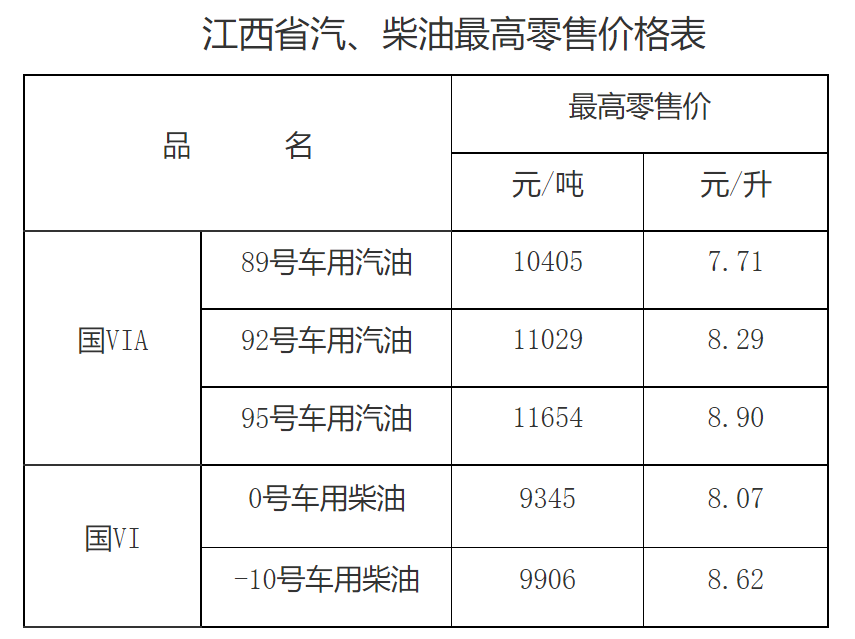 我省汽、柴油最高零售价格公布如下,
