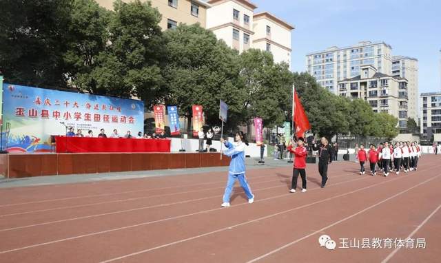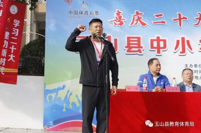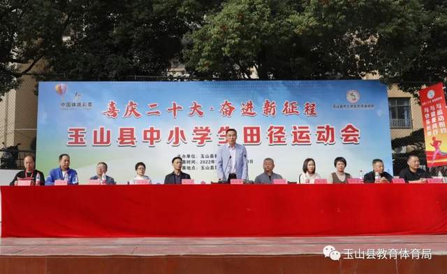 值党的二十大胜利闭幕之际,11月1日上午,秋阳暖照,丹桂香浓,玉山五中运动场上人头攒动,喜庆热烈,2022年“中国体育彩票杯”玉山县中小学生田径运动会在此隆重开幕。县政协副主席、教体局党委书记赵东青出席开幕式并宣布运动会开幕。教体局局长刘向阳致开幕词。教体局全体班子成员出席开幕式。陈闻主持开幕式。