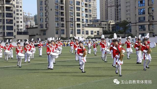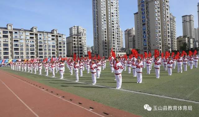 仪式结束,瑾山小学、逸夫小学、端明小学、玉山五中分别进行了管乐、武术操、课间操、团体操令人印象深刻的精彩展演。