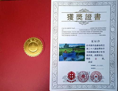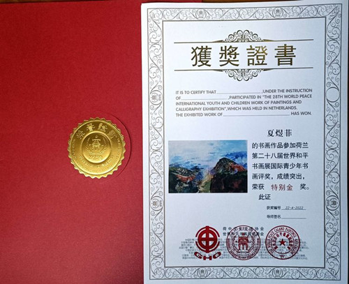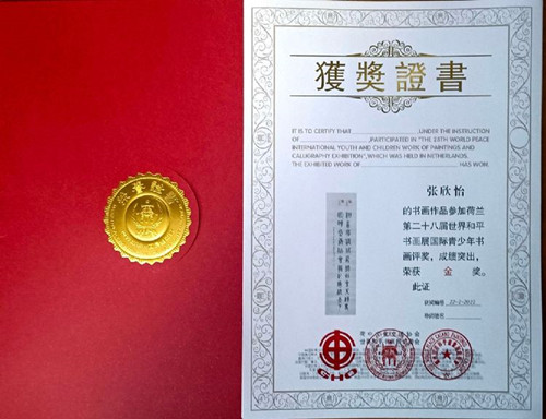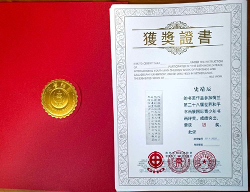 杰出艺术家张纪秦老师今年推荐4位自己教导的学生书画作品均在荷兰举办的第二十八届世界和平书画展获奖,其中特别金奖一名,金奖两名,银奖一名,可喜可贺!