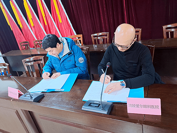 涪陵区第六人民医院院长刘义红与涪陵爱尔眼科医院院长邓承举行了专科联盟签约仪式。