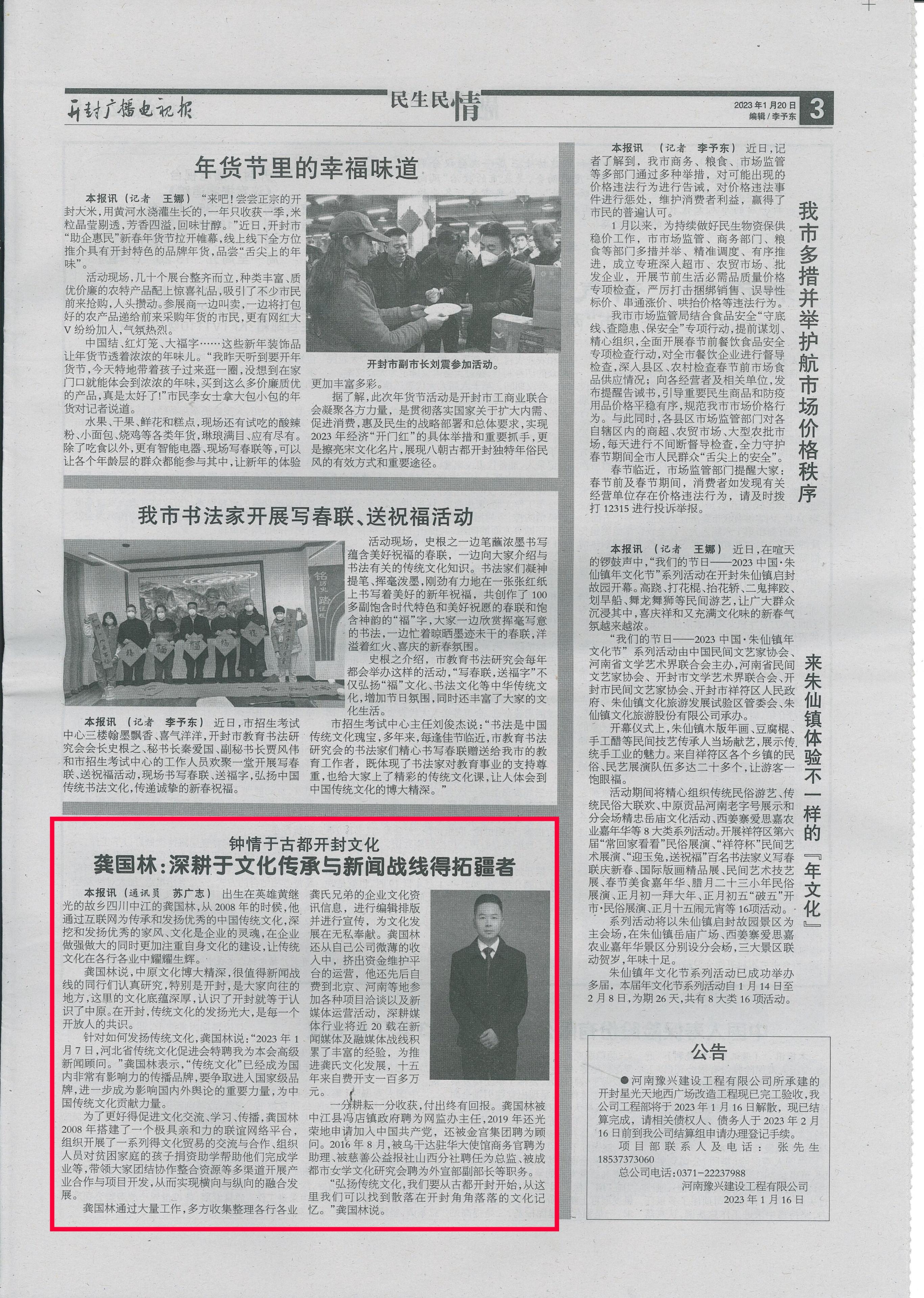 本报讯 苏广志《开封广播电视报》(2023年01月20日第03版)