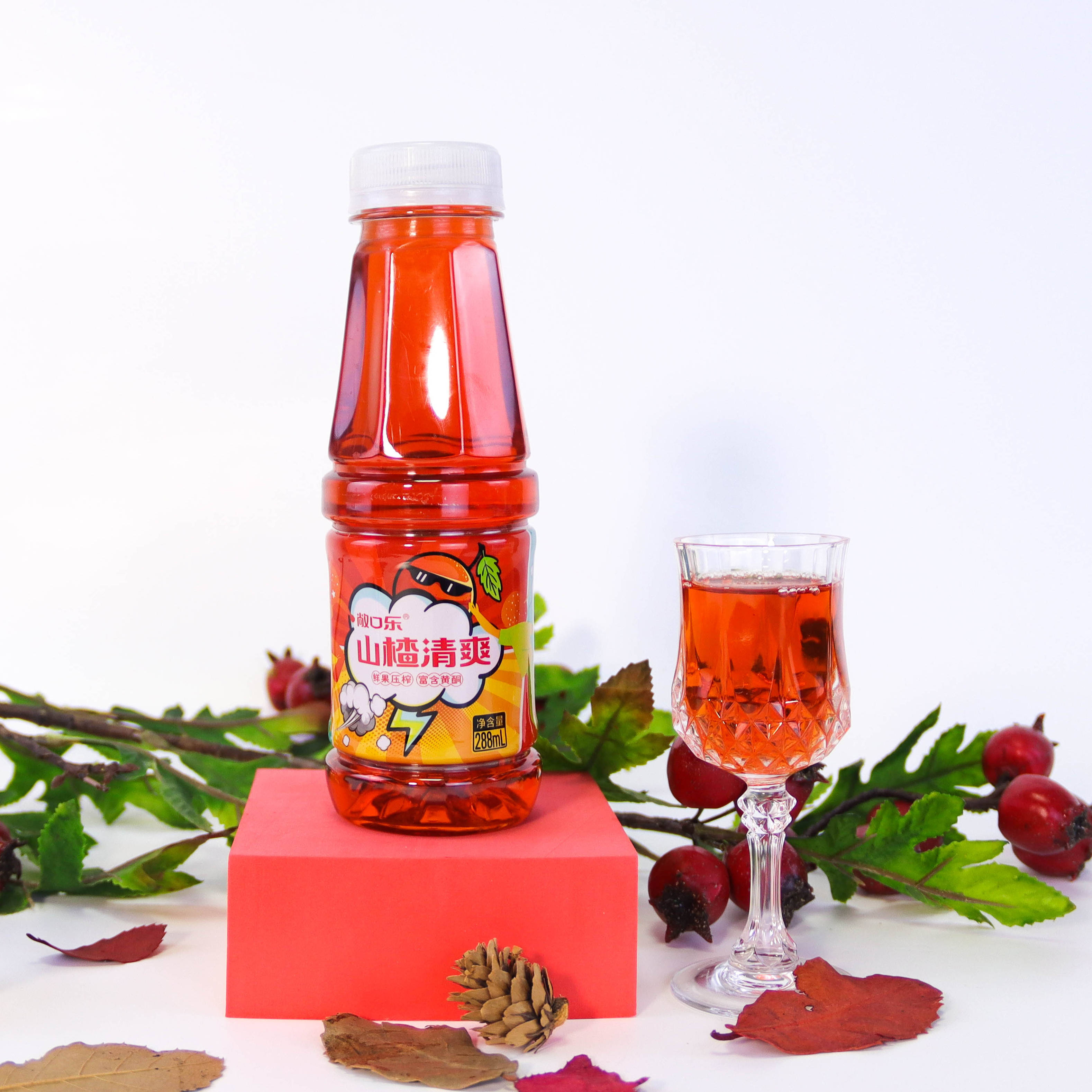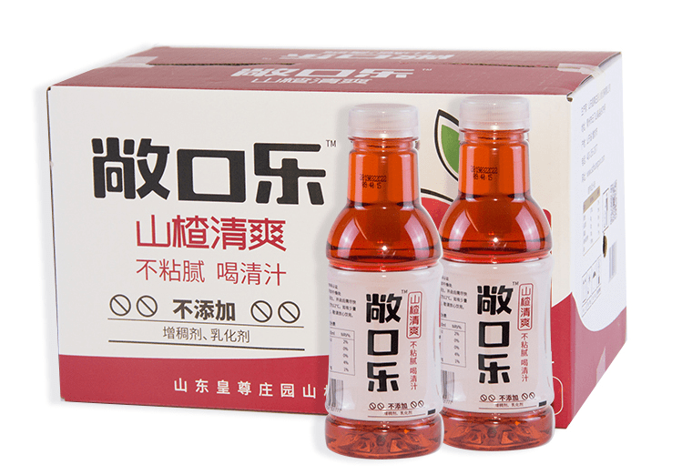 敞口乐山楂清爽,目前有288ml、450ml等不同的规格,净含量小,携带方便,即开即饮,避免了打开喝不完的山楂汁变质。
