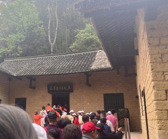 首先参观的是韶山毛主席铜像广场,伫立良久,瞻仰毛主席铜像,并向毛主席铜像敬献花篮。导游向我们介绍到毛主席打了73个补丁的睡衣和满是折痕的书籍等遗物时,感受到了毛主席艰苦奋斗的崇高精神和独特的人格魅力。当天下午排了许久的队伍才参观毛主席故居——一座普通的泥砖瓦房,群山环绕。在实地参观之前,难以想象毛主席是在一座那样简单的农家住房充实自己的内心,为日后坚定的革命道路打下基础。伟人之所以是伟人,物质的匮乏和环境的贫瘠却难以阻挡其前进的决心。