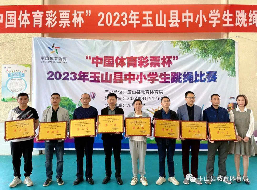 4月14-16日,玉山县东城小学体育馆内人头攒动、“绳”彩飞扬,各位运动健儿身轻如燕、脚下生风,一旁的啦啦队员助阵加油、喝彩不断,由玉山县教体局主办的“中国体育彩票杯”2023年玉山县中小学生跳绳比赛”在此举行。教体局党委委员、副局长李芹,教体局体育事业发展中心主任江晓峰出席颁奖仪式并为获奖选手和获奖团体颁奖。