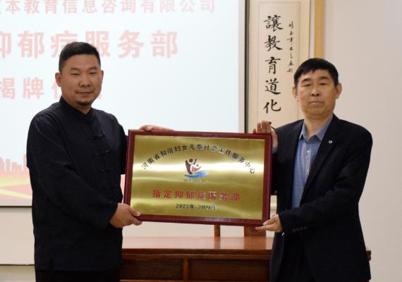 2023年5月9日,河南省和谐妇女儿童社会工作服务中心授权河南道本教育信息咨询有限公司作为指定抑郁症服务部揭牌仪式在郑州举行。