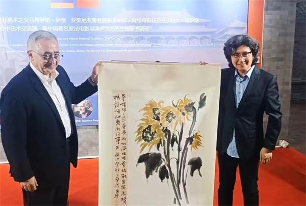 猎狐网讯:2023年6月29日,由亚美尼亚共和国驻华大使馆主办、法中经济与文化交流协会协办、海地国际文化传媒公司、首博书画院承办在宋庄首博美术馆举办了亚中艺术日“艺无界情无疆”国际艺术交流展。中国画家李光寒与亚美尼亚美术之父:马蒂罗斯·萨良先生、米纳斯·阿维蒂斯先生、亚历山大德罗扬先生共同举办了国际艺术交流展并与著名旅法导演尹大为赠新书活动同时在此举行。