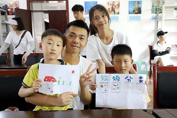 活动中,队员们带领小朋友们积极参与了绘画环保手抄报和变废为宝活动。