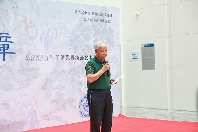 开幕式上,首先由深圳市收藏协会常务副理事长席彦超先生致辞,欢迎大家的到来并介绍活动内容。随后,第二届全国市县收藏组织工作经验交流会暨第二届中国文物艺术品交流会代表、惠州市收藏家协会创会会长贾明宇先生和中国亚洲经济发展协会文化遗产交流委员会执行秘书长王林曦女士先后发言致辞,表达对本次活动的感谢和支持。深圳博物馆首席文物鉴定师、二级研究员、专家代表郭学雷先生也在致辞中高度肯定展览的选题和展品的可靠历史年代,高度赞美展品的规格和品质,盛赞展览很有深度,给大家带来了多重惊喜。中国国际文化传播中心也发来贺辞表示祝贺并由深圳市收藏协会理事长韩昌晟先生宣读。最后,中国收藏家协会理事长罗伯健先生讲话,在历数前五届“中国(深圳)收藏文化月”活动丰硕成果的基础上,希望活动能够不断创新,再创新辉煌,称“中国(深圳)收藏文化月系列活动”为民间收藏如何高质量发展提供了一个非常好的范例。
