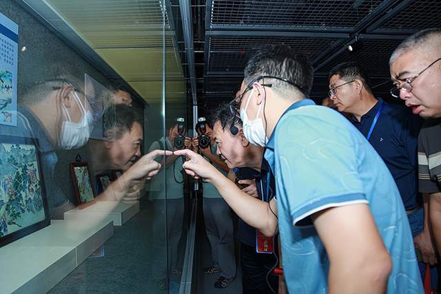 随后大家一起参观“彩绘华章——明清瓷器绘画艺术展”。本展览选取明清时期珍品瓷器上的精美绘画,结合现代科技展开成平面图,并按照人物、动物、植物、山水等不同题材分类展示。联系当时社会的艺术风格和绘画艺术,解读其丰富的文化内涵,让观众更好地了解瞬间的“窑火天工”所凝结而成的历史文化精华,进而更好地了解、学习、传承、弘扬中华优秀传统文化。