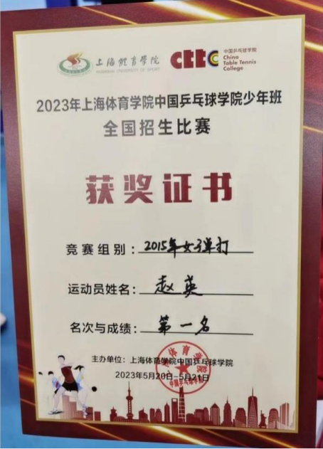 “赵英又拿了第一名,8 岁考上中国乒乓球最高学府!”这个新闻在义乌市不径而走。地灵人杰的义乌,在经济社会事业发展的征程上已拥有诸多桂冠,赵英在乒乓球运动中“出彩”,不仅是锦上添花,更是皇冠上又增一颗耀眼的明珠。