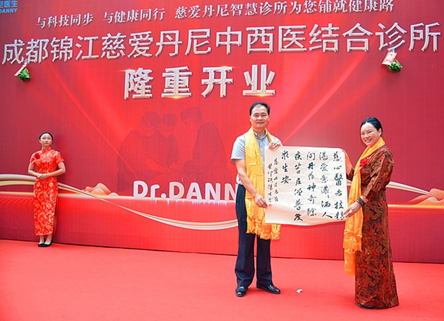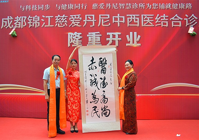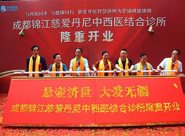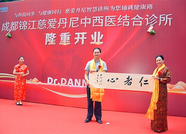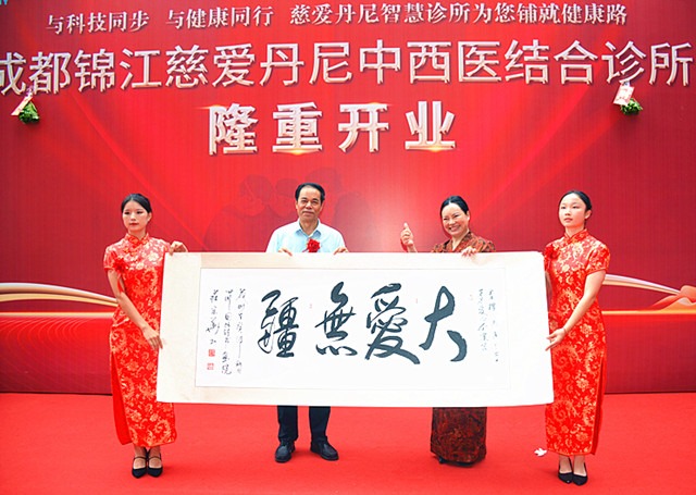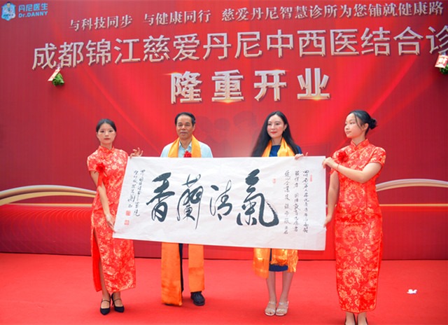 狮舞天地回元气,龙腾山河际太平。2023年9月15日上午,成都市锦江区琉璃路655号附2号门前,人潮涌动,鼓乐喧天,一种新型社区智慧医疗连锁机构——成都锦江慈爱丹尼中西医结合诊所在这里正式揭牌,这标志全国社区智慧医疗连锁创新品牌“锦江慈爱”正式落户成都,这也是该品牌在我国西部地区建设的首家实体医疗机构。原成都军区怒江军分区司令员、四川国防诗书画院执行院长庄宏华,原成都军区总医院专家组主任医师、解放军第37医院原院长雷朝毅教授,医者无疆(杭州)控股有限公司副董事长、成都锦江慈爱丹尼中西医结合诊所创办人、知名藏族爱心人士冯秀兰,医者无疆(杭州)控股有限公司副总裁兼总经理潘勇铭,四川省美术家协会老年分会副主席、成都市锦江区政协书画院执行院长陈洪,中国民生经济网总编辑刘昕,四川省第六届优秀青年川商奖获得者张雨薇,四川友好国际交流中心顾问张开文,成都甘孜商会监事长朋错等领导、专家、企业家及各界来宾等120余人出席当天揭牌仪式。