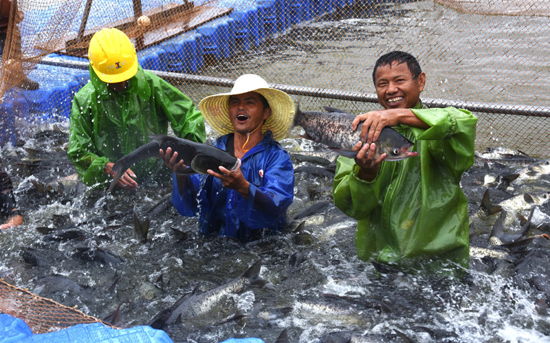 9月23日是第六个中国农民丰收节。在鄱阳县饶埠镇万亩水产基地,渔民们满怀喜悦地撒网捕鱼,收获金秋第一网。