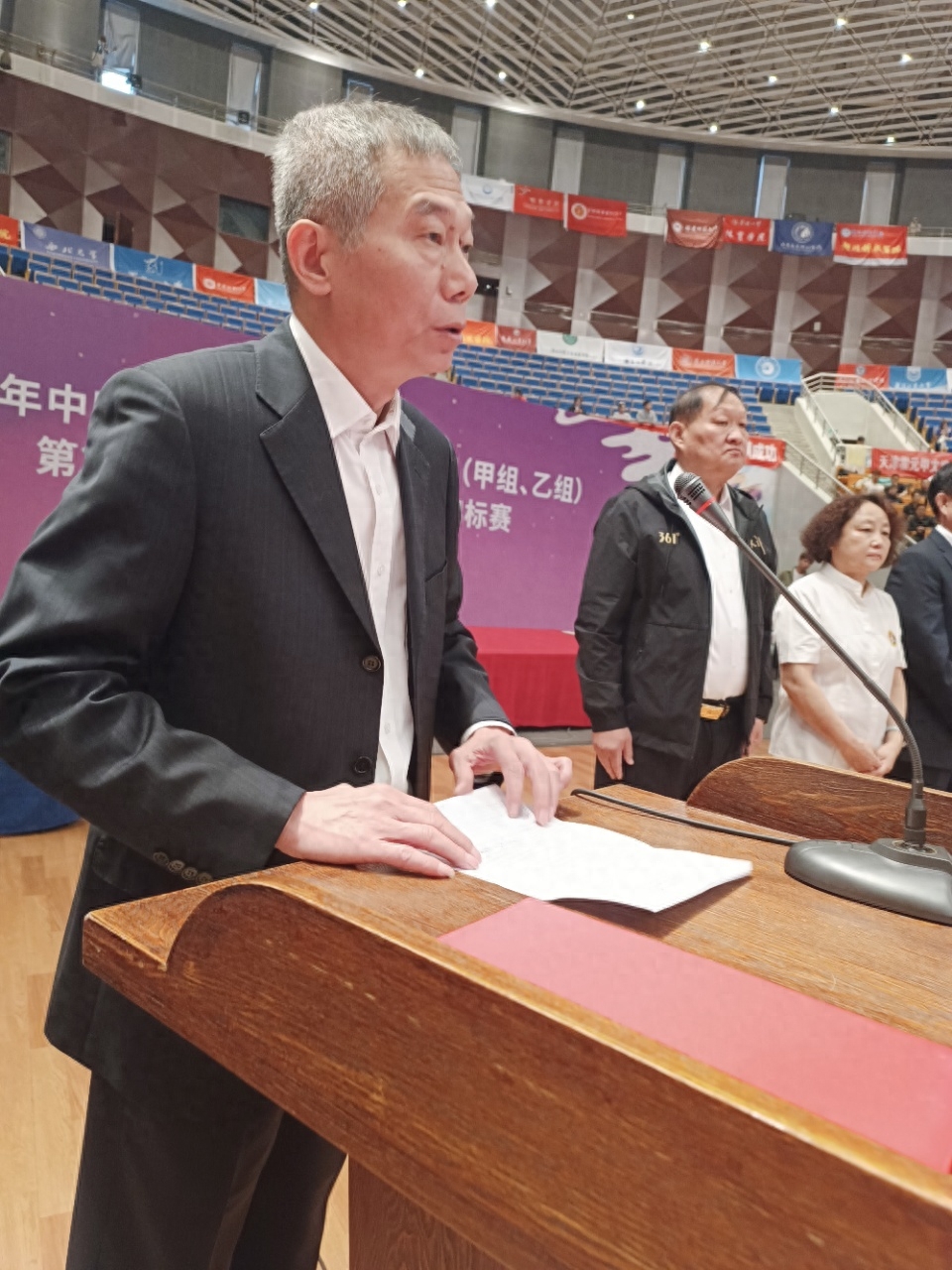 中国大学生体育协会民族传统体育分会主席杜长有代表分会欢迎出席盛会的教育界体育界的各位嘉宾以及媒体朋友向为赛事辛苦付出的领队教练员运动员裁判员工作人员和志愿者们特别向天津市武清区人民政府天津市武术协会武清区体育局表示衷心感谢。