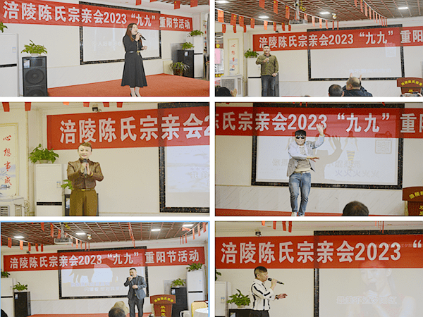 陈琼的一首《开开心心每一天》拉开了重阳节文艺演出的序幕,陈洪的《母亲》,陈丽娅的《呼伦贝尔大草原》,陈维的舞蹈《小苹果》,陈琼的《父亲》,陈兵演唱的《阿爸阿妈》,陈峰演唱的《最美夕阳红》悦耳的歌声让老人们听得入神,精彩的文艺演出烘托出喜庆的节日氛围。