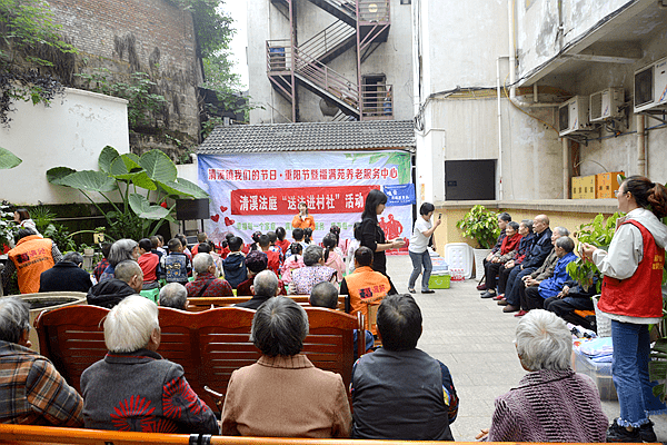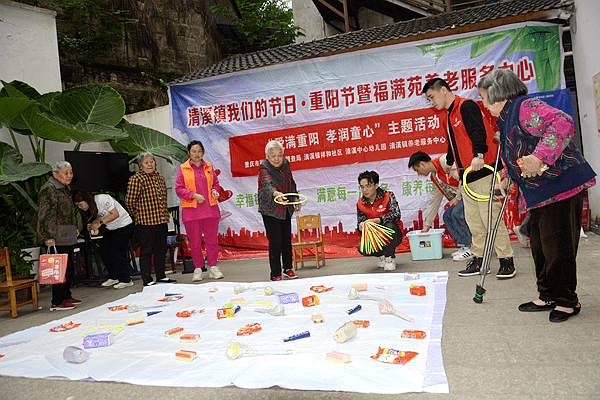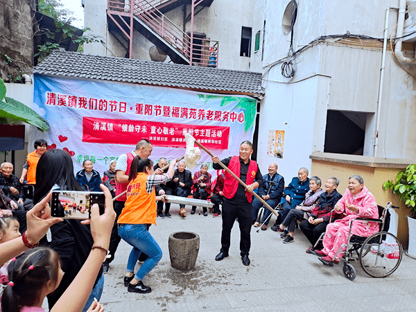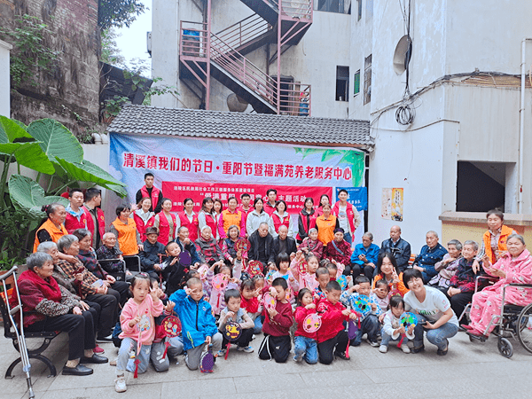 10月23日,位于重庆市涪陵区清溪镇福满苑养老服务中心内热闹非凡,来自重庆市税务局第七稽查局、涪陵区民政局、清溪法庭、清溪镇妇联、清溪镇关工委、清溪镇祥和社区、清溪镇养老服务中心、麦田社工等等志愿者们和清溪中心幼儿园小朋友、幼师一起与老人们共同度过一个温暖的节日——“重阳节”。