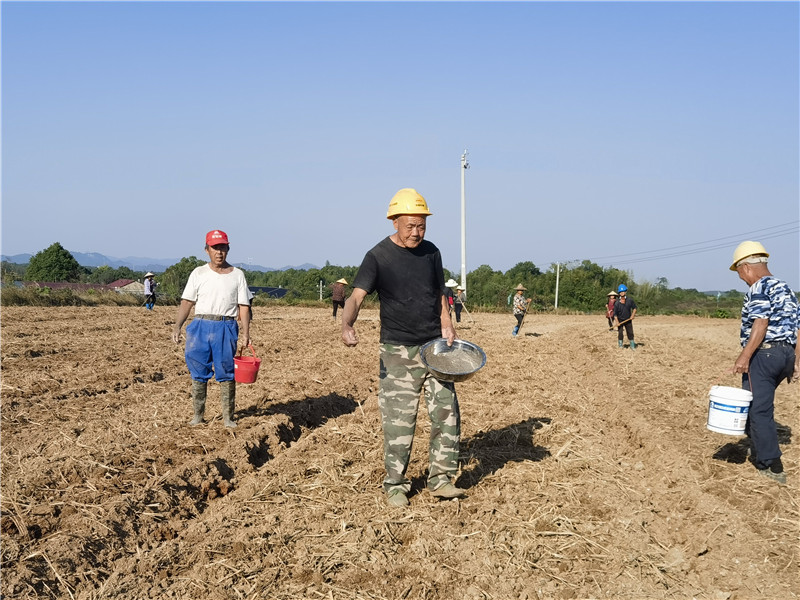 10月16日,广信区皂头镇毛棚村的村民趁着晴好天气开展冬种。据了解,广信区皂头镇计划冬种油菜4500亩,目前已播种了2500亩。 郑敏 摄
