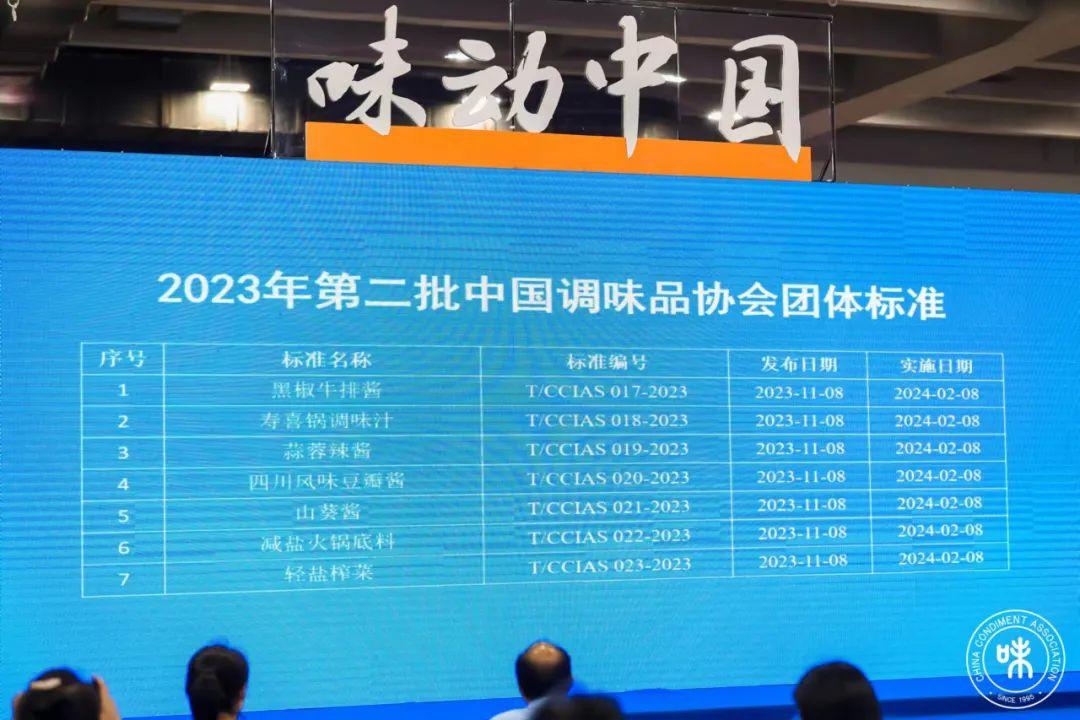 会议上,主办方公布了2023年第二批中国调味品协会团体标准,分别是《黑椒牛排酱》《寿喜锅调味汁》《蒜蓉辣酱》《四川风味豆瓣酱》《山葵酱》《减盐火锅底料》和《轻盐榨菜》7项团体标准;宣布了各标准起草单位及起草人信息以及中国调味品协会团体标准工作体系。