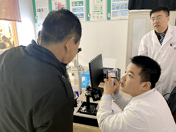 “眼底一张照,眼病早知道”眼底照相是检查眼底的重要检查方法之一,为了更好的关爱糖尿病患者的眼健康,社区卫生服务中心邀请涪陵爱尔眼科医院为糖尿病患者提供了公益眼健康检查,免费检测血糖及血压等。