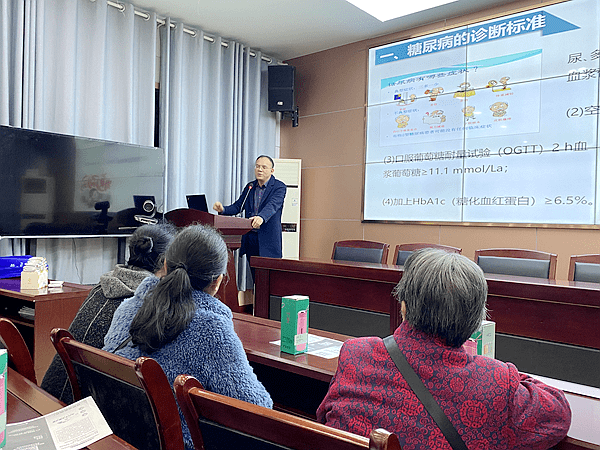 15日的活动是针对崇义街道社区卫生服务中心的糖尿病患者,全科医学科喻桃香开展了《糖尿病的危害与日常如何控糖》科普讲座的公益活动。