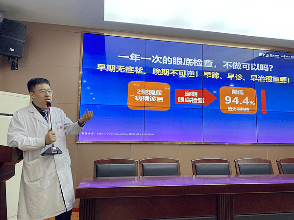 14日的活动主要针对荔枝街道社区卫生服务中心的糖尿病患者,副院长廖勇开展了《糖尿病的危害与患者日常如何控糖》的科普讲座,AI智能眼底相机检查等公益活动。