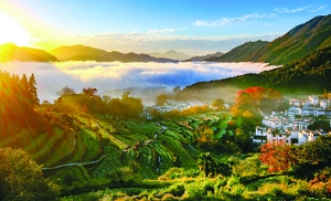 走进江岭,只见层峦叠嶂的梯田里绿油油的一片,白墙黛瓦的徽派民居错落有致地分布在山坡上,火红的枫树矗立在山头,似有将村庄包围之势,为村庄增添了几分明艳的色彩,带来了初冬的韵味儿。漫步其中,身心舒畅,在这里尽可享受乡村的惬意与快乐。