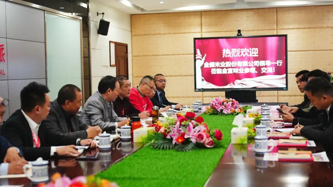 共工日报社财经局11月26日电(范琦 龚国林)2023年11月18日,湖南金健米业副总经理杨乾诚协同公司营销总经理姚正友,销售部部长刘川,生产中心经理郭浩昱、西南大区经理吴浩等一行领导到访金宫川派味业,展开参观、交流、合作。