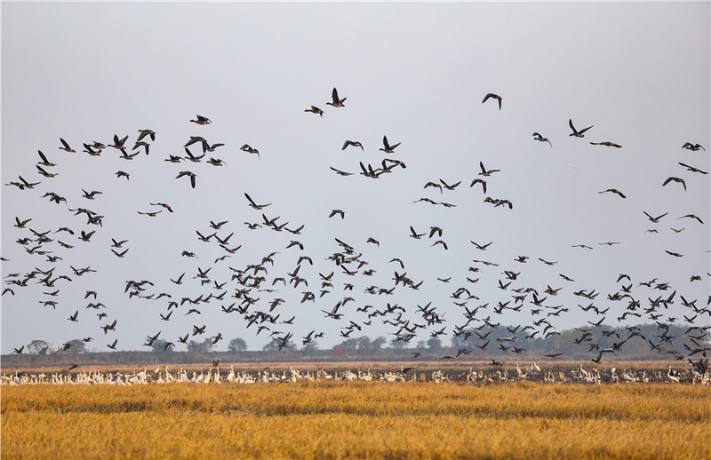 12月3日,在余干县康山垦殖场插旗洲分场,越冬候鸟翩跹嬉戏。据了解,每年秋冬季,余干康山垦殖场都会迎来大批白鹤、天鹅、大雁等珍禽候鸟,其中全球三分之二的白鹤来此越冬。随着该县持续开展生态环境专项整治,来此越冬的候鸟也不断增多。