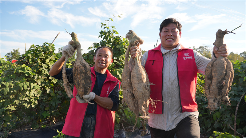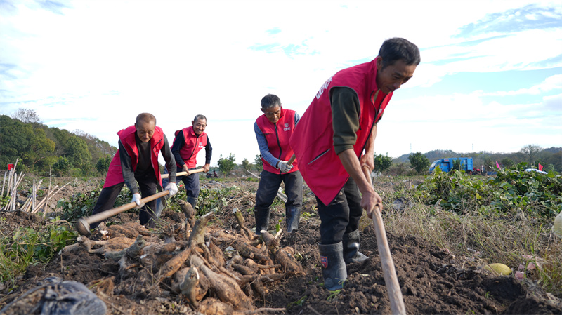 12月24日,在横峰县岑山生态农业千亩葛根种植基地,当地农民正忙着采收新鲜葛根。横峰是“葛之乡”,该县依托良好的自然环境和旅游资源优势,大力推广葛根的生态化种植,促进葛根种植及深加工产业链的发展。侯先钢 摄
