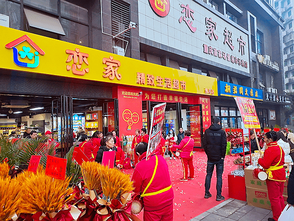 一大早,“恋家超市”门前就摆满了花篮,吸引众多路人驻足围观购物。上午8:28分,以时尚舒适的购物环境,琳琅满目的优质商品,伴随锣鼓喧天、礼炮齐鸣正式迎来了雅月店的开门迎客,场面热闹非凡。开业期间凭任意金额单张收银条均可领取高山脆莲白一个。
