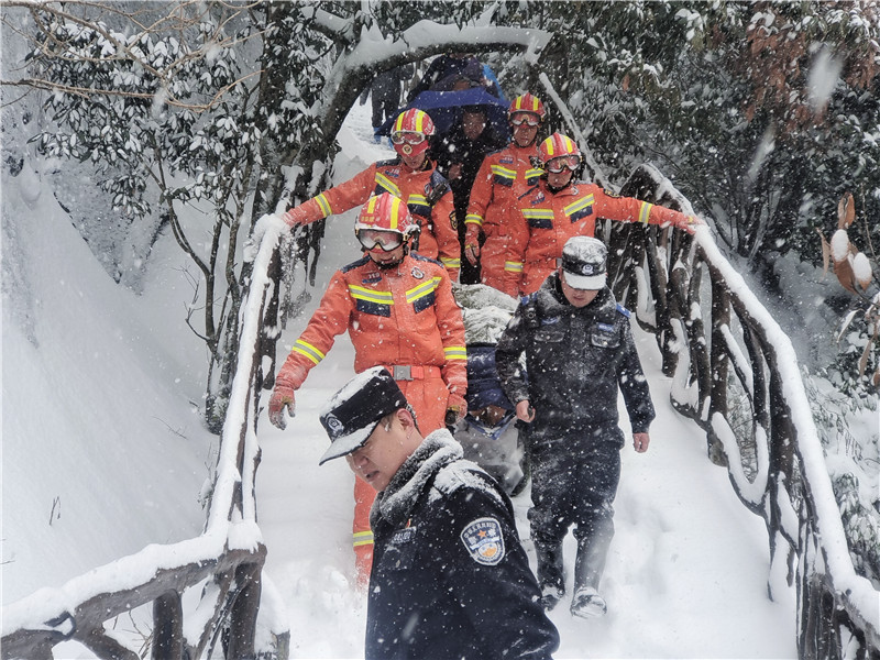 1月22日,一名游客在三清山风景区一线天栈道途中,不慎滑倒跌入三米深悬崖,情况十分危急。上饶消防支队接警后,立即组织人员火速赶往现场。经过1个半个小时的紧急救援,终于将伤者转移至山下医院救治。目前伤者无生命危险,正在接受进一步治疗。陶志红 记者邱崴 摄影报道