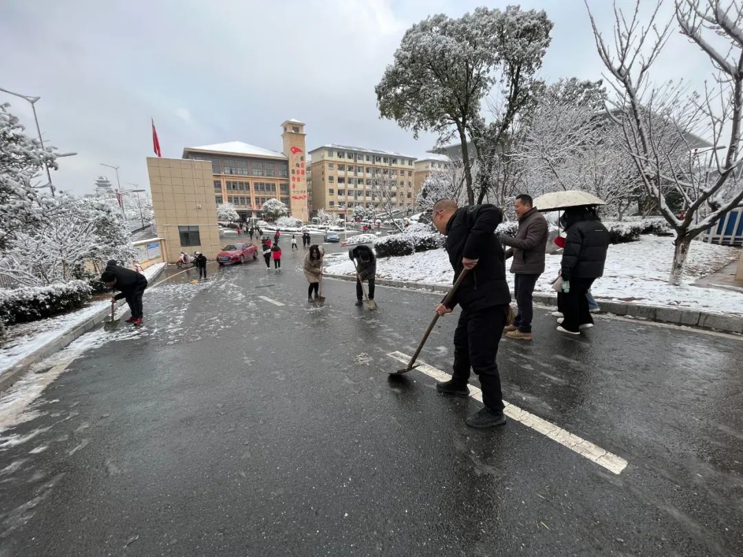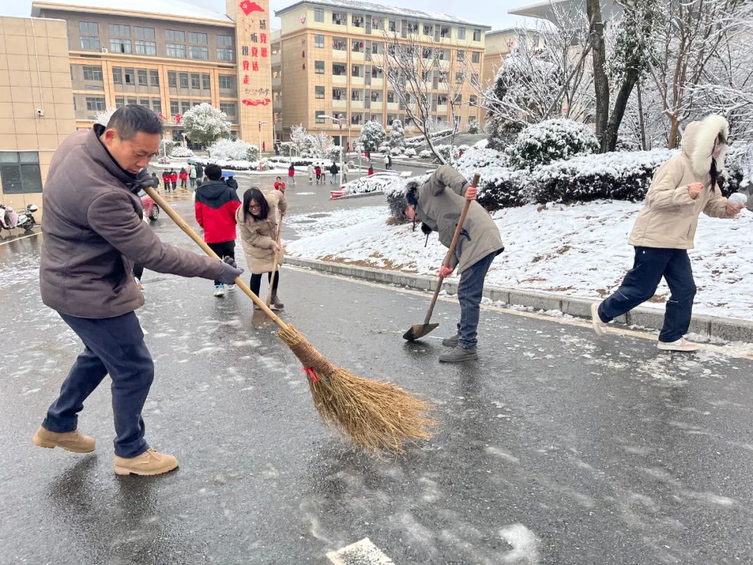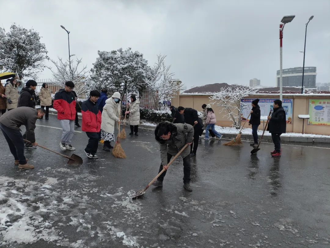 一夜降雪,为维护校园环境秩序,保障师生出行安全,1月23日早上,党员教师冲锋在前,挥起扫帚,拿起铁铲,主动清扫校园路面积雪,用实际行动向校园传递“温暖”。