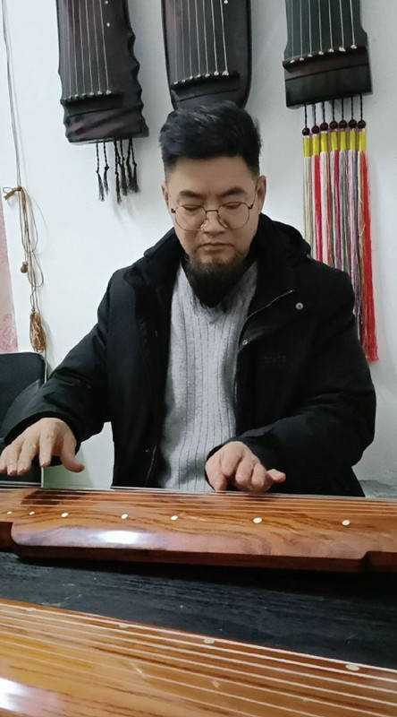 岁始临历代名帖,真草行隶篆,五体皆能,尤善行草。少时体弱曾拜当地拳师习武強身,青年时与太极结缘,后又去陈家沟拜太极大师翟全平学习陈氏太极,明理练拳,惭次见功。现为:翰林院美术馆国礼书画家,香港国际华人书画家协会海南省分会副会长兼扬州市分会顾问,青风书画院副院长,扬州武当行宫道长,翰林院文化艺术中心海南联络处副主任。古琴演奏被电视媒体专题报道,书法作品荣获世界和平书画展全球名家邀请赛金奖。古琴与书法,更被海内外众多艺术爱好者及社会名人所珍藏。古琴存雅韵,书武共一身古琴,世传华夏祖先伏羲、神农、舜按天地、阴阳、五行之说削桐为琴,绳丝为弦,以通神明之德,合天地之和,修身理性,返其天真。摹古开今而入法境,师于自然而探其理。作为斫琴名师的耀武,深知悟道与艺术相通。本着抱朴归真,道法自然,更知合抱之木生于毫末,九层之台起于累土,千里之行始于足下。“选材良,用意深,五百年,有正音”。制作每一张古琴,从材料的选择开始,到槽腹、合琴、灰胎、研磨、擦光、定徽、安足、上弦,他都是遵循古制。善制者,更当善奏。月色满轩白,琴声亦夜阑;冷冷七弦上,静听松风寒。古调随自爱,今人多不弹;为君投此曲,所贵知音难。听耀武弹奏古琴,琴声幽幽,仿若从古代穿越而来,高古苍劲、简净素朴,恰如一幅明清画卷,简素的淡墨山水,徐徐展开......道法自然,融与琴中。耀武作为武当行宫道长,身在红尘,心在水云。在主持宋德义道长的悉心指导下,孜孜践行中华传统优秀文化,追求和、静、清、远之境界。使其形成了冲澹简净,幽远朴素的琴风,别具道家山林风气。难能可贵的是耀武师古不泥,内外兼修,文武双馨。把书法之雅、太极之韵融入于古琴演奏之中,以气驭琴,大道至简,终将大器必成!
