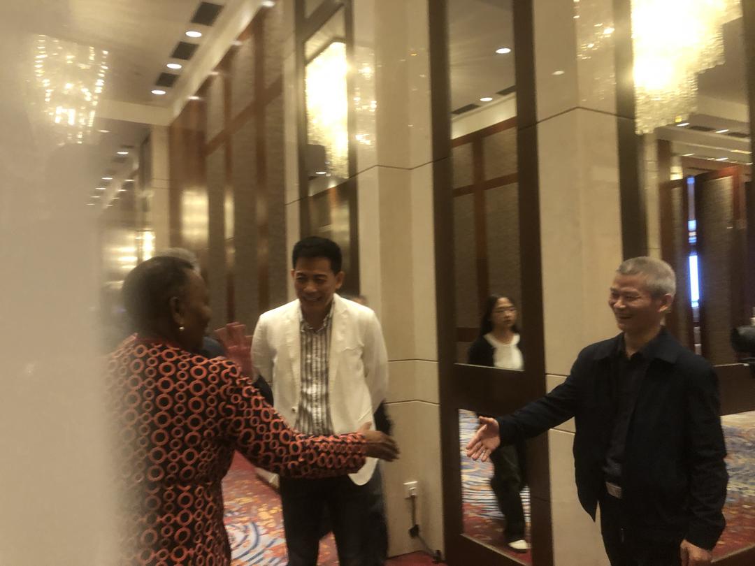 与乌干达驻华大使馆商务公使娄晓明先生及大使馆原工作人员杨先生进行亲切交流。香港共工社发